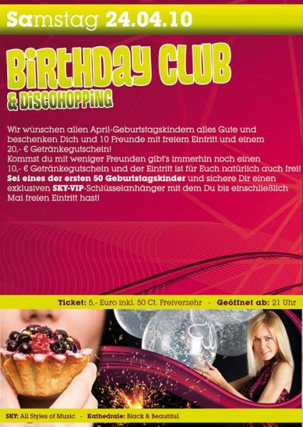 EventBirthday Club & Discohopping @ SKYSa, 24.04.2010 Neuburger Str. 128 D - 94036 Passau SKY - Discothek