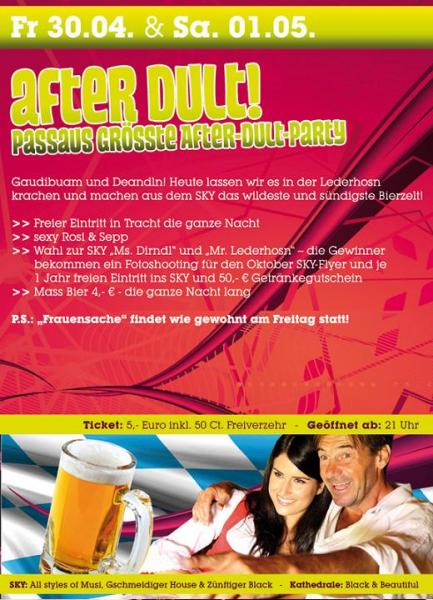 EventAfter Dult @ SKY PassauFr, 30.04.2010 - Sa, 01.05.2010 Neuburger Str. 128 D - 94036 Passau SKY - Discothek