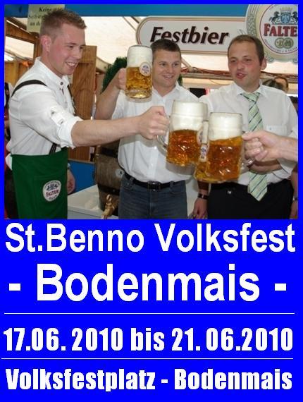 EventSt. Benno - Volksfest @ BodenmaisDo, 17.06.2010 - Mo, 21.06.2010 Miesleuthenweg 32 D - 94249 Bodenmais Volksfestplatz - Bodenmais