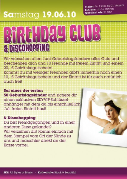 EventBirthday Club & Discohopping @ SKYSa, 26.06.2010 Neuburger Str. 128 D - 94036 Passau SKY - Discothek