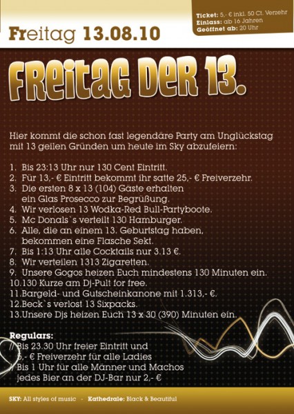 EventFreitag der 13. @ SKY PassauFr, 13.08.2010 Neuburger Str. 128 D - 94036 Passau SKY - Discothek