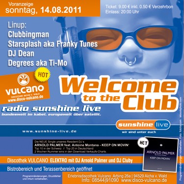 EventSunshine Live @ VulcanoSo, 14.08.2011 Arbing 26 a D - 94529 Aicha v. Wald Discothek Vulcano Location