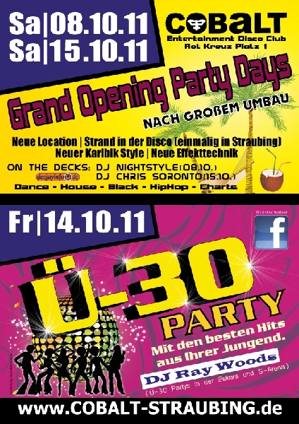 EventGrand Opening PartySa, 08.10.2011 Rot Kreuz Platz 1 D - 94315 STRAUBING Cobalt Club Location