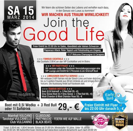 EventJOIN THE GOOD LIFESa, 15.03.2014 Arbing 26 a D - 94529 Aicha v. Wald Discothek Vulcano Location