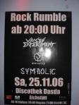 25.11.2006 Rock Rumble in der Discothek DasDa (Eichstätt)Seite 1/2 :: 58 Bilder :: 1510 Klicks :: 0 Kommentare Symbolic, Sonority und Voices Experiment haben beim Rock Rumble in der Discothek DasDa in Eichstätt (nähe Ingolstadt) ordentlich die Bude gerockt. Hier ein paar Bilder vom Event: |