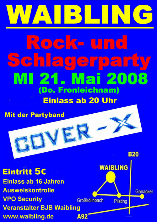 EventRock- & Schlagerparty in WaiblingMi, 21.05.2008 Weinbergstr. 6 D - 94431 Hopfensperger Halle