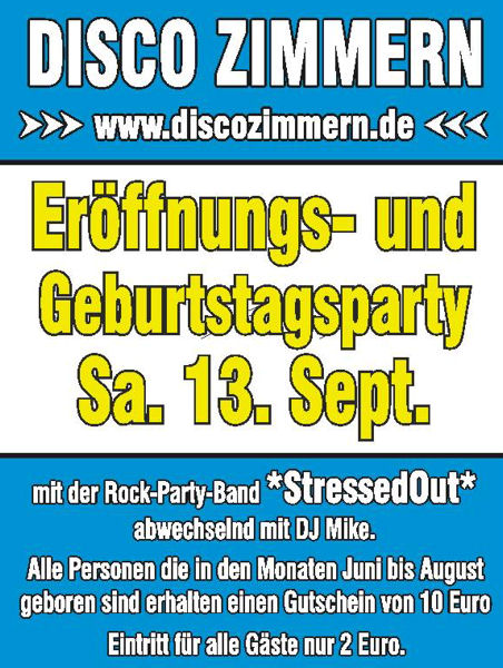 EventEröffnungsparty @ Kultdisco ZimmernSa, 13.09.2008 Prinzstraße 7 D - 84367 Disco Zimmern Location