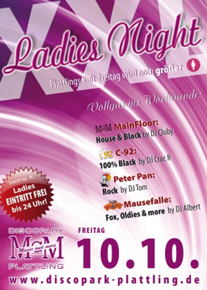 EventXXL LADYS NIGHT @ Discopark PlattlingFr, 10.10.2008 Otto-Brindl-Straße 1 D - 94447 DISCOPARK PLATTLING