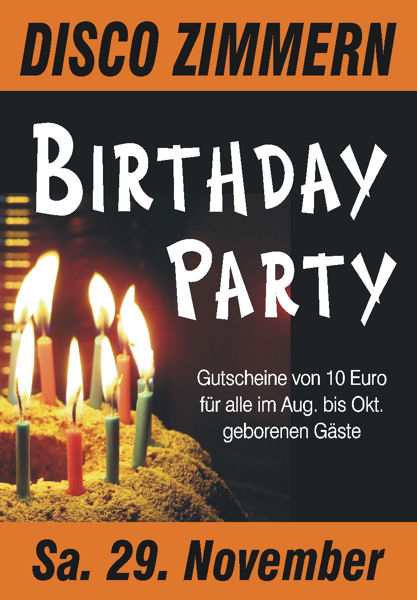 EventBirthday Party@ Disco ZimmernSa, 29.11.2008 Prinzstraße 7 D - 84367 Disco Zimmern Location