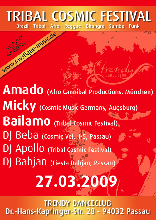 EventTribal Cosmic FestivalFr, 27.03.2009 D - 94032 Passau Trendy Danceclub Location