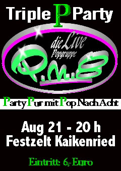 EventTriple P Party @ KaikenriedFr, 21.08.2009 Teisnacherstr. 10 D - 94244 Kaikenried Festzelt/ Kaikenried