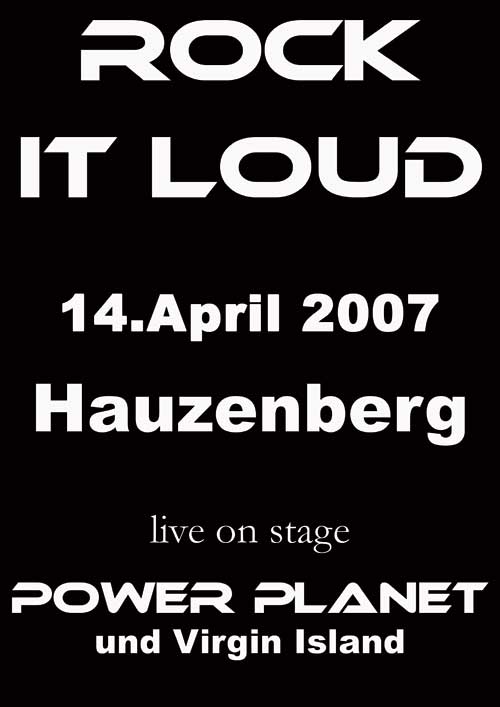 Am 14.04. ist es soweit, der Raßreuther Trachtensaal öffnet seine Pforten für Rock it loud Einlass ab 20 Uhr, Eintritt AK: 6 Euro ab 16 Jahren. Es geht los um 21.30 Uhr mit der Band Virgin Island, Dann um ca 22.45 Uhr brennt die Luft Power Planet rockt die Show Der Party Rock burner startet die Tour 2007 mit einem neuen Programm. mal ein kleiner Auszug was es zu hören geben wird: -Onkelz -Rammstein -Evernesence -AC/DC -System of a down -Papa Roach -Limp Bizket -Robbie Williams -Bon Jovi -Alana Miles -Melissa Etheridge -Nena -Rage against the maschine eines haben wir uns noch auf die Fahne geschrieben, Günstige Getränkepreise Happy Hour von 21:00 - 22:00 Uhr Getränkepreise während der Happy Hour: - Salitos 2€ - Jacky - Cola 2€ - Wodka - Energy 2€ ANFAHRT ab KAUFLAND IN HAUZENBERG: Vom Kaufland noch ca 700 Meter weiter richtung Sonnen. Nach der Brücke links abbiegen zum Freudensee. Ab da geradeaus, die abknickende Vorfahrt rechts und noch 500 meter weiter dann seid Ihr am Ziel (ist auf der linken Seite) Info: Warum im ??? TRACHTENSAAL ??? Bei der Planung des Events gab es 2 Probleme zu lösen. 1. Einen Partytempel zu finden der genügend Leute fassen kann (hier gehen ca 1000 rein) 2. Einen Partytempel zu finden in dem man überhaupt ein Rockevent veranstalten darf. Die Stifter Halle in Hauzenberg steht leider für diese Art von Events nicht mehr zur Verfügung, und wenn dann begrenzt auf 400 Leute (nun wer will das schon )Also sind wir in den sogenannten Trachtensaal ausgewichen, der allerdings die besten voraussezungen bietet. (bsp. grosser Parkplatz, abgelegen usw.) Also ROCK ON |
