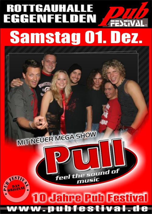 | PUB FESTIVAL 2007 in der Rottgauhalle Eggenfelden 10 JAHRE PUB FESTIVAL An diesem Tag sorgt die Band Pull für die richtige Stimmung Pull = Feel the sound of music zum Bericht Pub-Festival in Eggenfelden |