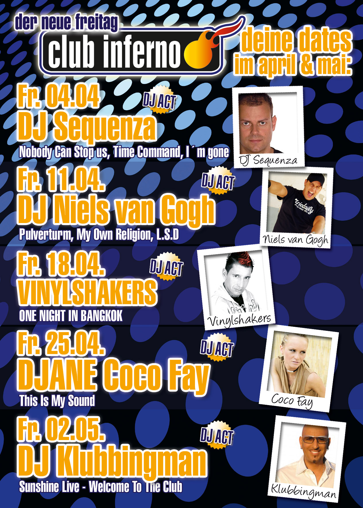| Am 18. April 08 Im Bali Club Inferno - DJ Niels van Gogh B]Club Inferno @ Bali Das Beste aus Dance, Hands Up, House, Jumpstyle & Blacksounds! Heute live: DJ Niels van Gogh (Pulverturm, My Own Religion, L.S.D) Viel Spaß!! |