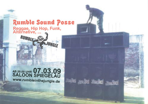 RUMBLE IN THE JUNGLE am Sa. 07.03. ab 20.00 Uhr im SALOON Spiegelau/Palmberg Rumble Sound Posse with REGGAE - Hip Hop - FUNK - Alternative www.rumbleinthejungle.de Eintritt Euro 1,-- |