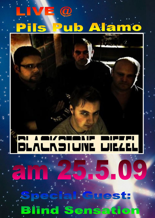 | 25. April 2009 Alamo in Mauth Blackstone DieZel & Blind Sensation Blackstone DieZel: Die Shows beinhalten neben dem 70 er Jahre Sound auch zwei stimmige Gitarrenlicks und natürlich wird auf ein druckvolles Drumsolo nicht verzichtet. Die Band hat es sich zur Aufgabe gemacht seine Fans und das neugierige Publikum, gehörig ein- zuheizen und das Bier aus den Poren zu pressen. Blind Sensation: Gänsehautmusik von 4 Vollblutmusikern. Wer da ned kommt, hat selber schuld.... Look @: www.youtube.com/watch?v=2CZw6tQP92Y |