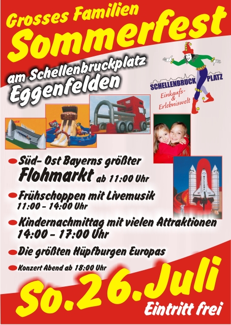 | Großes Familien Sommerfest @ Schellenbruckplatz Los geht es um 11 Uhr mit Süd-Ost-Bayerns größtem Flohmarkt zu dem gleichzeitig der Frühschoppen mit den „Original Zillertalern“ startet. Ein großzügig gestaltetes Kinderprogramm wird es ab 14 Uhr geben. Neben den größten Hüpfburgen Europas gibt es auch traditionelle Kinderattraktionen wie z. B. Ponyreiten, Kinderschminken, Clowns etc. Der Höhepunkt des ganzen Wochenendes wird am Sonntagabend erreicht. Keine Geringeren als das „Nockalmquintett“ gibt Eggenfelden die Ehre. Die Sympathischen Österreicher, deren vorangegangenen fünf CDs allesamt auf Platz 1 der Austrian Album Charts landeten stellen Ihre neue CD „Ich dich auch“ live vor. Als Vorband wird die Gruppe „Fantasy“ mit ihrem aktuellen Album „Land in Sicht“ sein. Ein starkes Duo. So ist wohl kurz und knapp die Beste Beschreibung für Freddy und Martin die bereits 1996 den Durchbruch in Deutschlang feiern konnten. Den Eggenfeldenern dürften diese beiden keine Unbekannten sein da Sie bereits im Februar 2009 in der Diskothek FUN zu hören waren. Alles in allem warten wir gespannt auf den 24 – 26 Juli 2009 am Schellenbruckplatz in Eggenfelden. Auf ein großartiges Wochenende freut sich der Schirmherr der Veranstaltung Herr Cajetan Lang. |