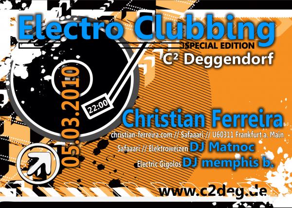 Electro C²lubbing Special mit MATNOC (safaaari // elektroweizen) + CHRISTIAN FERREIRA (c²lubbing) Start 22 Uhr Die Headoffice der Electric Gigolos laden zum Ohrenschmaus ein |