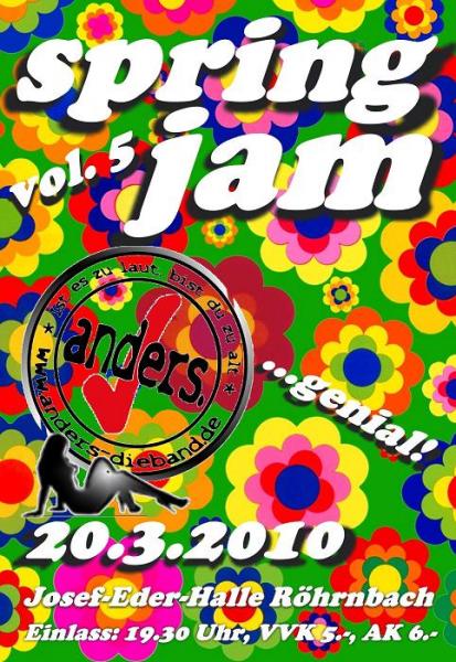 | Spring Jam Vol.5 - anders. genial! in der Josef - Eder - Halle in Röhrnbach. die einzig wahre, die legendärste aller Partys.. Spring Jam geht in die 5.Runde. Eingeheizt durch die Topband anders. wird sich zeigen, wer bereit ist, richtig abzufeiern.. Pizza für das leibliche Wohl und Getränke aller Art machen auch diese Party wieder zum vollen Kracher! Also, nix wie hin.. |