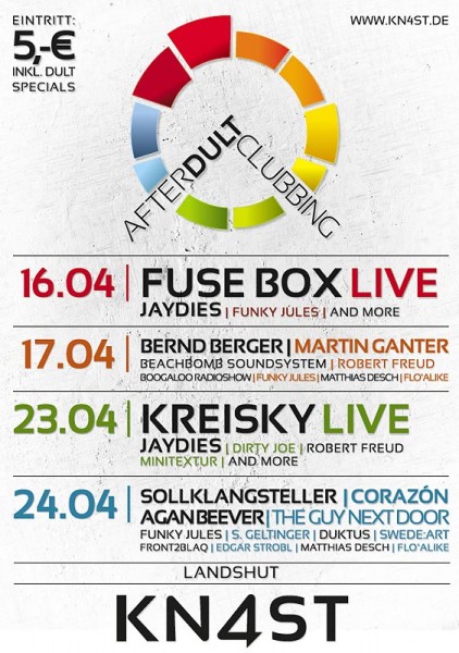 | 24. April 2010 KN4ST in Landshut After Dult Clubbing | Sollklangstelle Sollklangsteller | Corazón | Agan Beever | the guy next door | Funky Jules | S. Geltinger | Duktus | Swede:Art | Front2Blaq | Matthias Desch | Floálike www.kn4st.de |