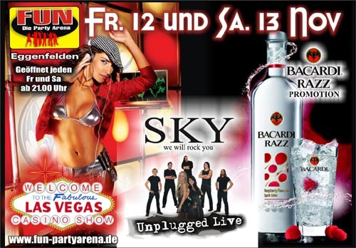 12./13. November 2010 BACARDI RAZZ PROMOTION Geöffnet jeden Fr und Sa ab 21 Uhr SKY we will rock you - Unplugged Live |