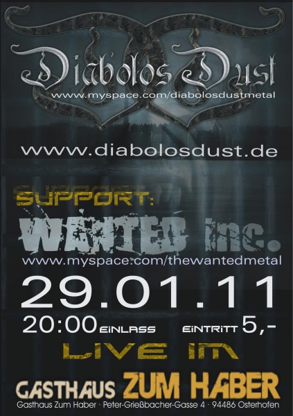 | Metalkonzert in Osterhofen Livekonzert mit den Bands: DIABOLOS DUST - THE WANTED |