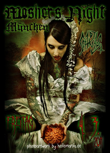 | Moshers Night @ Garage-deluxe METAL METAL METAL Nun darf die MOSHER´S NIGHT auch in MÜNCHEN über die Bühne gehen. Wie in jeder MOSHER´S NIGHT sorgt DJ Schnapsi, für eure Dosis Sadomaso in den Gehörgängen. Die Location (Garage) befindet sich bei den Optimolwerken. D.h. - Parken vor der Location - S – Bahn Anschluss - Zugverbindung in der Nähe - Burger King in der Nähe Der Einlass beginnt ab 22:00 Uhr … Ich hoffe wir sehen uns! weitere Infos könnt ihr unter www.myspace.com/dj-schnapsi oder www.facebook.com/dj.schnapsi schaut auch mal in unserer Gruppe vorbei. http://www.bsmparty.de/gruppe/14932 |