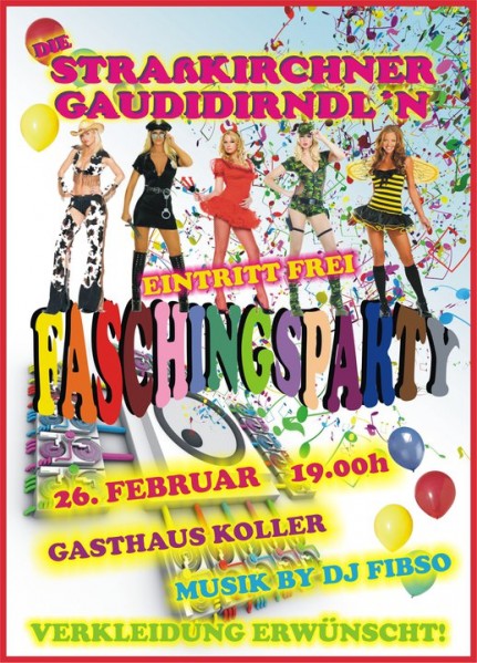 | Faschingsparty Hulla Di Bulla - ES IST SOWEIT Die super Party steht bereit, wos uns 11 mädls narrisch gfreit! drum kim vorbei mid an haffa leid dann feiert ma den Fosching heier gscheid Die Straßkirchner Gaudidirndl´n freuen sich auf euer kommen !! |