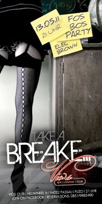 | Take a breake - and lets have a drink! Viele stehen vor den Abschlussprüfungen und andere arbeiten bei dem tollen Wetter. Das schlechte Gewissen sagt einem innerlich "Nein! Du gehst jetzt nicht feiern!" Doch an dem Tag ist es soweit. Es ist Zeit für ein "short breake". Mach eine Pause und lasse es dir gut gehen. Damit du kein schlechtes Gewissen hast, haben wir folgendes vorbereitet: - Longdrinks 4,30 € - Fl. Vodka 0,5l mit 3 Red Bull 24 € - Fl. Jägermeister mit 4 Red Bull 40 € ... all night long vom Vio's Allstarsteam fresh gemixt und heiße Beats gibt es von Elec Brown. "Jeder braucht mal eine Pause." |