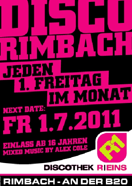 | 01.07.2011 Disco R1 Jeden 1. Freitag im Monat geöffnet! |