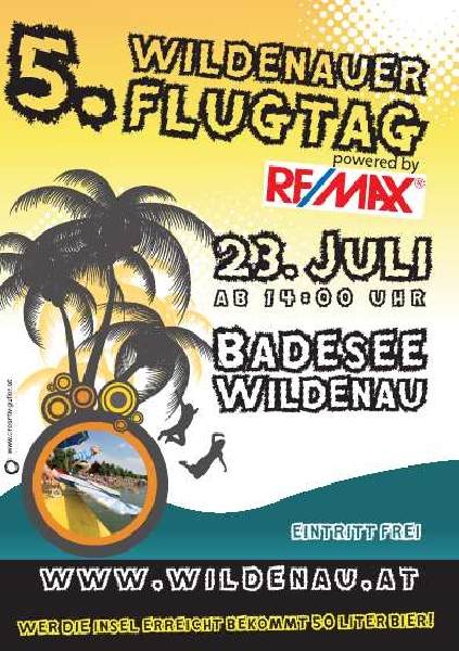 | !!!! Achtung Terminänderung auf 30. Juli 2011 !!!! 5. WILDENAUER FLUGTAG Unter dem Motto: „Herunter kommen sie alle“, findet am Badesee Wildenau der 5. Wildenauer Flugtag statt. Wildenau wo waghalsige Pilotinnen und Piloten wieder versuchen werden über den Luftweg mit ihren selbstgebastelten Flugobjekten die Insel am Badesee Wildenau zu erreichen. Also keine Landratten, sondern vielmehr schwimmfeste Überflieger werden den heimischen Vögeln das Fürchten lehren um sich so den Titel Flugmeister 2011 zu holen. Start: ca 15:00 Uhr Team: max. 9 Personen + 1Pilot Fluggerät: Ohne jeglicher Antriebsart, Öl- und Fettfrei, darf nur von den 9 Co-Piloten bewegt werden. ACHTUNG: 40cm. min. Flügelhöhe Nur Eigenbau-Flugobjekte Startrampe: 20 Meter Lang 4 Meter Hoch Bewertung: a, weitester Flug b, schönstes Fluggerät - originellste Besatzung Siegerehrung: Nach der Flugshow am Badeseegelände, ca 18:30 Uhr |