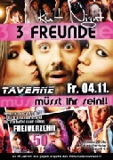 | 3 Freunde müßt iht sein !!!! Wir haben sie wieder für Euch, unsere KULT-NACHT: 3 Freunde müßt Ihr sein Ihr müßt zu dritt die Taverne vor 24 Uhr besuchen....... An der Kasse erhaltet Ihr 3 dann einen Freiverzehr von 50.- €!!!! Erhältlich ab 18 Jahren und nur gegen Abgabe des Perso- nalausweises!!! PPAARRTTYYY!!! |