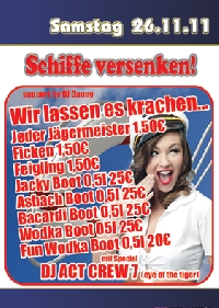 | Wir lassen es krachen... Jeder Jägermeister 1.50€ Feigling 1.50€ Ficken 1.50€ Jacky Boot 0.5L 25€ Asbach Boot 0.5L 25€ Bacardi Boot 0.5L 25€ Wodka Boot 0.5L 25€ FUN WODKA BOOT 0.5L 20€ |