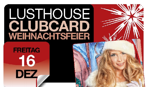 | Wir laden alle lusthouse Club Card Besitzer zur Weihnachtsfeier ein! Bis 22.00 Uhr erhalten alle Members: • Freien Eintritt • Gratis Sekt • Special lusthouse Weihnachtsgeschenk plus gratis Weihnachtsmütze |