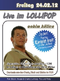 | Achim Köllen LIVE im Lollipop Jeden Freitag Eintritt frei für die Ladies! |