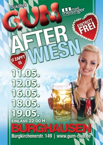 | Wohin nach der Maiwiesn? Logisch: ins GUM weiterfeiern!...und das bei freiem Eintritt! www.gastroundmusik.de |