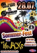 | Samstag, 28. Juli 2012 19:00 Schneizl rockt wieder!!! Großes Sommerfest der Straub Naturerlebnis & Event GmbH und Bauern-House Schneizlreuth!!! Gerockt wird mit der derzeit wohl besten Party-Cover Band in unseren Gefilden, den "The LifeJACKS"! Los gehts um 19 Uhr! Eintritt 3 Euro! (mit Sparkassen xtension-Karte 2 Euro Ermäßigung!!!) bei schönem Wetter draussen, bei schlechtem Wetter drinen! Wir freuen uns auf eueren Besuch!!! Euer Straub-Team www.straub-abenteuer.de bsmparty ist Live vor Ort |