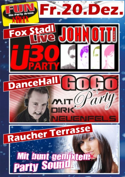 | GoGo Party mit Dirk Neuenfels - DanceHall Raucher Terrasse mit bunt gemixtem Party Sound John Otti Band live - Fox Stadl Eintritt 5,- €. Geöffnet jeden Freitag und Samstag sowie vor Feiertagen ab 21:00 Uhr |