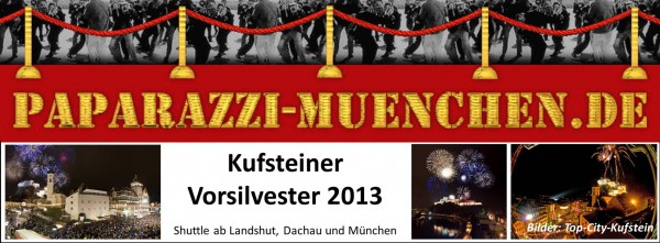 | In Kufstein knallen die Korken früher! Einen Tag früher als der Rest der Welt feiert das kleine Städchen in Tirol das neue Jahr. Beim Kufsteiner Vorsilvester heitzen die Bands und DJs in der malerischen Altstadt den rund 8000 Gästen kräftig ein und die vielen Ständchen, Buden und Restaurants laden auf einen Snack, ein Bier oder einen Glühwein ein. Auch in diesem Jahr bieten wir euch wieder die Möglichkeit dabei zu sein - mit dem paparazzi-muenchen.de Shuttlebus zum Kufsteiner Vorsilvester 2013. Unser Paket beinhaltet: • Eintrittskarte zum Kufsteiner Vorsilvester • 2.- € Verzehgutschein für Essen oder Getränke • Busfahrt von und nach Landshut (16:30 Uhr, 37.-€) / Dachau (17:00 Uhr, 35.- €) / Erding (17:15 Uhr, 35.-€) / München-Ostbahnhof ( 18:00, 32.-€) • !!!A Riesengaudi und unseren eigenen Fotoscout an Board!!! Das Kufsteiner Vorsilvester 2013 \"In Kufstein gehen die Uhren anders, denn die Festungsstadt begrüßt das neue Jahr bereits traditionellerweise einen Tag früher als der Rest der Welt. Rund 8.000 Besucher vorwiegend aus Bayern und Tirol werden sich wieder in der Kufsteiner Innenstadt versammeln, um bereits am 30. Dezember bei viel Musik und bester Stimmung auf das neue Jahr anzustoßen. Das vorgezogene Jahresfinale hat in Kufstein gewissermaßen bereits Tradition und geht heuer in die 18. Runde. Ab 18:00 Uhr verwandelt sich das Zentrum der Festungsstadt in eine einzige Konzert-Fläche. Auf der Bühne am Oberen Stadtplatz sorgt die Live-Band \"Torpedos\" ab 20:00 Uhr für perfekte Vorsilvester-Stimmung. Ein weiterer Augenschmaus erwartet die Besucher zudem um Mitternacht beim traditionellen Feuerwerk, das bei Walzerklängen den Himmel über der Stadt am Inn hell erleuchten wird.\" (Top-City Kufstein GmbH) |