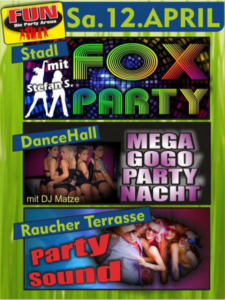 | Mega GoGo Party Nacht mit Dj Matze - DanceHall Fox Party mit Stefan S. - Stadl Partysound - Raucher Terrasse Eintritt 5,- € Geöffnet jeden Freitag und Samstag sowie vor Feiertagen ab 21:00 Uhr |