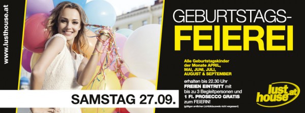 | Alle Geburtstagskinder der Monate April, Mai, Juni, Juli, August & September - erhalten bis 22.30 UhrFREIEN EINTRITT mit bis zu 3 Begleitpersonen und 1 Fl. PROSECCO GRATIS zum Feiern! (gültigen amtlichen Lichtbildausweis nicht vergessen!) Und heute dürfen auch wieder "Boote versenkt" werden!! |