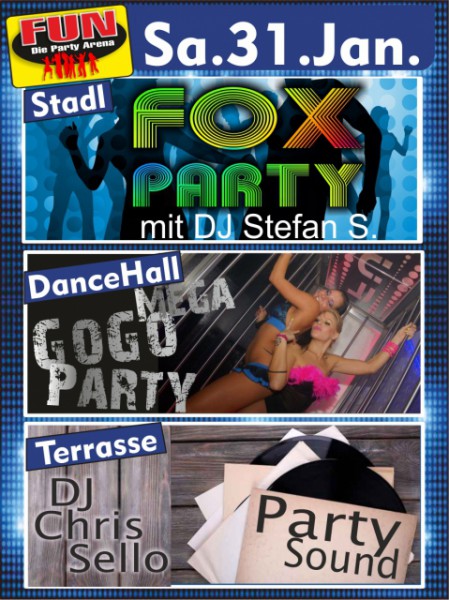 | Fox Party mit DJ Stefan S. Stadl: Fox Party mit DJ Stefan S. DanceHall: Mega GoGo Party Raucher Terrasse: Party Sound mit DJ Chris Sello |