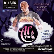 | ALs PARTY - YOUTUBE STAR ALBERTO LÄDT EIN 2 Millionen Facebook-Likes. 1,3 Millionen Youtube-Abonnenten.. ALBERTO, einer der erfolgreichsten Social Media Stars kommt mit seiner durchgeknallten Party ins Revolution! Jeder kennt 'ALBERTO' von Youtube, Facebook oder aus den Fernsehsendungen 'Kayas Woche' oder 'Circus HalliGalli'. Probier leckere Chickenwings nach Al´s Geheimrezept oder trete an beim Bootyshake-Contest und zeig was in Dir steckt. Du wolltest schon immer vor Publikum Dein Talent am MIC beweisen? Jetzt hast Du die Chance entdeckt zu werden bei Al´s Beatboxcontest. Youtube Star 'Alberto' lädt ein: ★ AL'S CHICKEN WINGS FOR FREE ★ AL'S BEATBOX CONTEST ★ AL'S BOOTYSHAKE CONTEST ★ AL'S SIEEF KLAMOTTEN ★ AL'S Fotoshooting / Autogramme Diese Nacht wird unfassbar! |