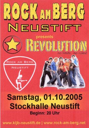 | Es ist dieses Jahr mittlerweile die 4. Auflage dieser Party jetzt aber mit neuen Namen "Rock am Berg". Jedes Jahr steigende Besucherzahlen bis zu unserem Rekord aus dem letzten Jahr mit 2400 Besuchern!! Das Highlight des Jahres mit der Megaband "Revolution"!!! Zitat vom BSM-Party.de - Team von 2004: Rockfest in Neustift!!! Wer hier nicht war hat echt was verpasst. Mit einem super Publikum (sehr viele von BSM) ging hier gestern mal wieder richtig die Party ab! Wie nicht anders zu erwarten war die Band Revolution wieder spitzenklasse und hat auch mit Einlagen aus dem Rock´n Roll und anderen Oldies eine klasse Stimmung aufgebaut. Das heizte die Partymeute so richtig an die auch voll darauf einstiegen... Die Organisation war lobenswert ebenso wie die Location!!! Dank an die Veranstalter ! | | | | www.rock-am-berg.net | | | | Happy Hour von 20:30Uhr - 21:30 Uhr Hier findet ihr Infos über Anfahrt, die Party und vieles mehr! Habt ihr Fragen, dann ruft einfach an, 0170-7018797! SERVICE: Ab ca. 23 Uhr werden Taxis zur Heimfahrt bereitgestellt. Falls diese gerade unterwegs sind und keine mehr auf dem Parkplatz, dann kann für sie eine Taxi bestellt werden! Sie brauchen sich nur an das Personal oder an den Manager wenden! ACHTUNG: - Eintritt ab 16 Jahre und mit gesondertem Stempel zur Alterserkennung! - Bier & Pils ab 16 Jahren - Bargetränke ab 18 Jahren - Ausweis & Taschenkontrollen werden vorbehalten (aufgrund der Sicherheit und Getränkeschmuggel) |