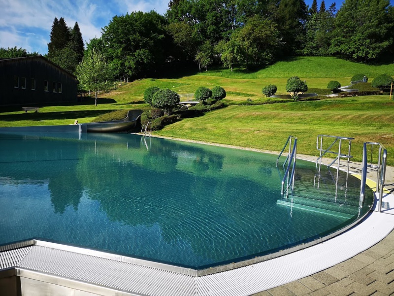 | Das Freibad öffnet am 10.05.2018 um 10:00 Uhr seine Türen für die neue Saison. Badespass und Erholung für die ganze Familie im solarbeheizten Erlebnisbad EBS. Die große gepflegte Liegewiese bietet einen herrlichen Blick auf das gesamte Badeareal und lädt zum Sonnenbaden ein. Für einen erholsamen und abwechslungsreichen Badetag bietet das EBS eine Vielzahl von Einrichtungen: 84 m lange Wasserrutsche Erlebnisbecken mit Massagedüsen, Nackendusche Bodenluftblubber und Wasserpilz Sprungturmanlage Kinderbecken mit Wasserrutsche Kinderspiel- und Beachvolleyballplatz Imbissverkauf Verleih von Liegestühlen und Schirmen Hinweis: Parkhaus für Schwimmbadbenutzer kostenlos! Parkschein lösen und Quittungsabschnitt bei der Eingangskasse vorlegen. Gäste mit der Nationalpark Card vergnügen sich zum halben Preis im EBS. |