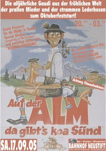 | ...die Party zur Dultzeit! Passau´s beste Partymusik präsentiert von DJ Frankie Domani & DJ Puta Madre Gratis Prosecco für alle Mädls in Tracht! Wegen Filmaufnahmen Einlass nur ab 18 Jahren! |