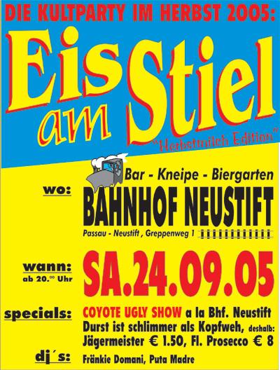 | COYOTE UGLY SHOW a la Bhf. Neustift Durst ist schlimmer als Kopfweh, deshalb: Jägermeister € 1,50, Fl. Prosecco € 8 dj\'s: Fränkie Domani, Puta Madre |