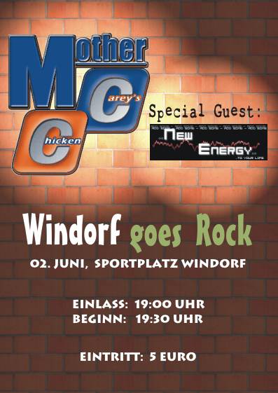 Windorf rockt!!!! Mit den Bands "Mother Careys Chicken" und "New Energy"! |