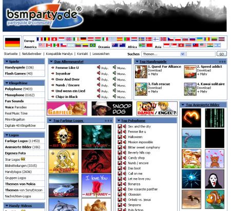 Diese Woche ist die Zeit der Neuerungen auf bsmparty.de. Seit heute ist das HANDYFUN-Portal von bsmparty.de am Start unter: www.bsmparty.de/handyfun Dort könnt Ihr euch die neuesten Klingeltöne, Bildschirmschoner, Handyspiele, Logos usw.. herunterladen. Wir haben darauf geachtet einen fairen Partner zu finden. Deshalb 100%ige Garantie: KEIN ABO-Vertrag, Dialer usw.. Es entstehen bei Verwendung zusätzliche Kosten außerhalb von bsmpart.de. Also reinklicken und das Handy frisieren: www.bsmparty.de/handyfun Bei Nutzung dieses Services (beim Versand) entstehen zusätzliche Kosten. Diese sind im Bestell-Popup ganz unten aufgelistet.