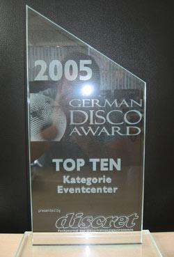 In einer glanzvollen Preisverleihung am 26. April in der Prisma Nachterlebniswelt in Dortmund wurden die besten Diskotheken Deutschlands mit den begehrten Preisen ausgezeichnet. Bereits zum fünften Mal veranstaltete die Zeitschrift „discret – Fachjournal der Unterhaltungsgastronomie“ den „German Disco Award“, zu dem sich in diesem Jahr mehrere hundert Diskotheken aus ganz Deutschland in drei Kategorien beworben haben. Glamourös verlief bereits die Ankunft der zahlreichen geladenen Gäste. Nicht nur die große Anzahl der Diskothekenbetreiber durfte über den roten Teppich zum V.I.P.-Eingang der Prisma Nachterlebniswelt in Dortmund schreiten, auch jede Menge Stars und Sternchen der Szene waren in trotz des schlechten Wetters in Feierlaune. Mit der Verleihung der Preise in der Königskategorie, den „Eventcentern“ über 2.000 qm, erreichte die DISCO VULCANO einen Platz unter den TOP 10! Platz 1 bis 3 werden dabei direkt vergeben. Platz 4 bis 10 werden nicht direkt vergeben sondern jeweils mit der Bezeichnung TOP TEN! Das gesamte